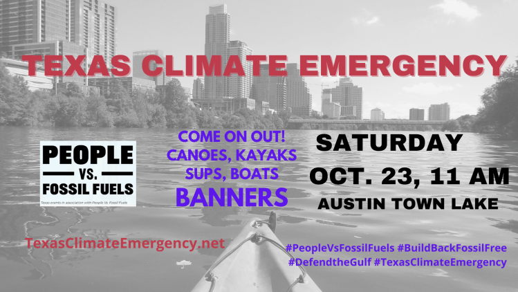 An important way you can help – if you can – is to make a financial donation to contribute to the Texas Climate Emergency October event EXPENSES: